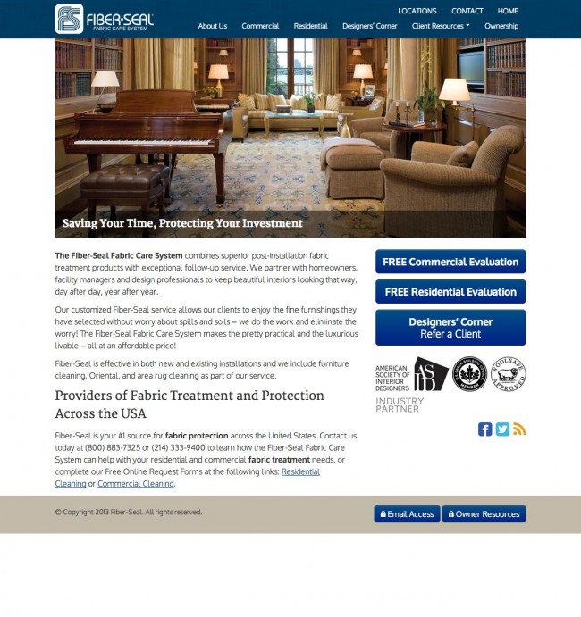 While employed with Holmes Millet, I helped design and develop a new website for Fiber-Seal. The site was iteratively designed in an agile-like manner using responsive design techniques with further consultation from the design team at Holmes Millet. Some of the features included multiple email-based forms and a document management system for the Designers' Corner section. An Owner Resources section also incorporated a document management system along with a way for clients to submit a basic order request for products.